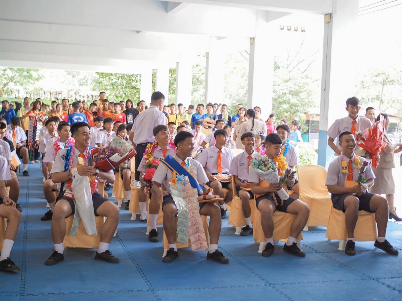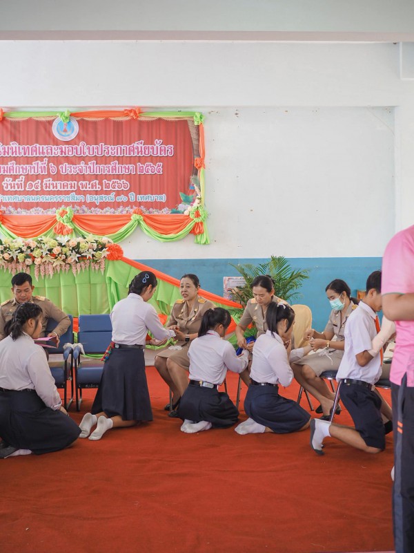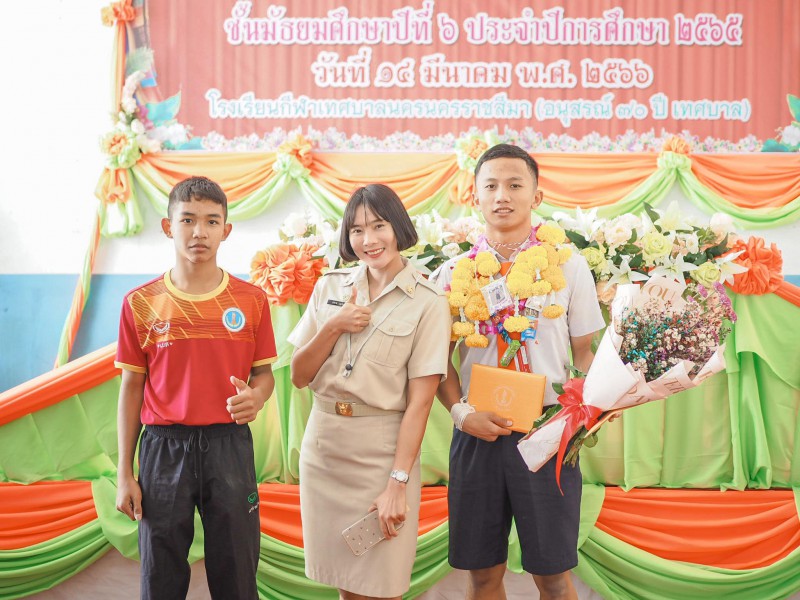 วันที่ 14 มีนาคม 2566 โรงเรียนกีฬาเทศบาลนครนครราชสีมา (อนุสรณ์ ๗๐ ปี เทศบาล) จัดพิธีปัจฉิมนิเทศและมอบใบประกาศนียบัตรให้กับนักเรียนชั้นมัธยมศึกษาปีที่ 6 โดยมีนายประสริฐ บุญชัยสุข นายกเทศมนตรีนครนครราชสีมา เป็นผู้มอบใบประกาศนียบัตรให้กับเรียนพร้อมแขกผู้มีเกียรติร่วมในพิธี |