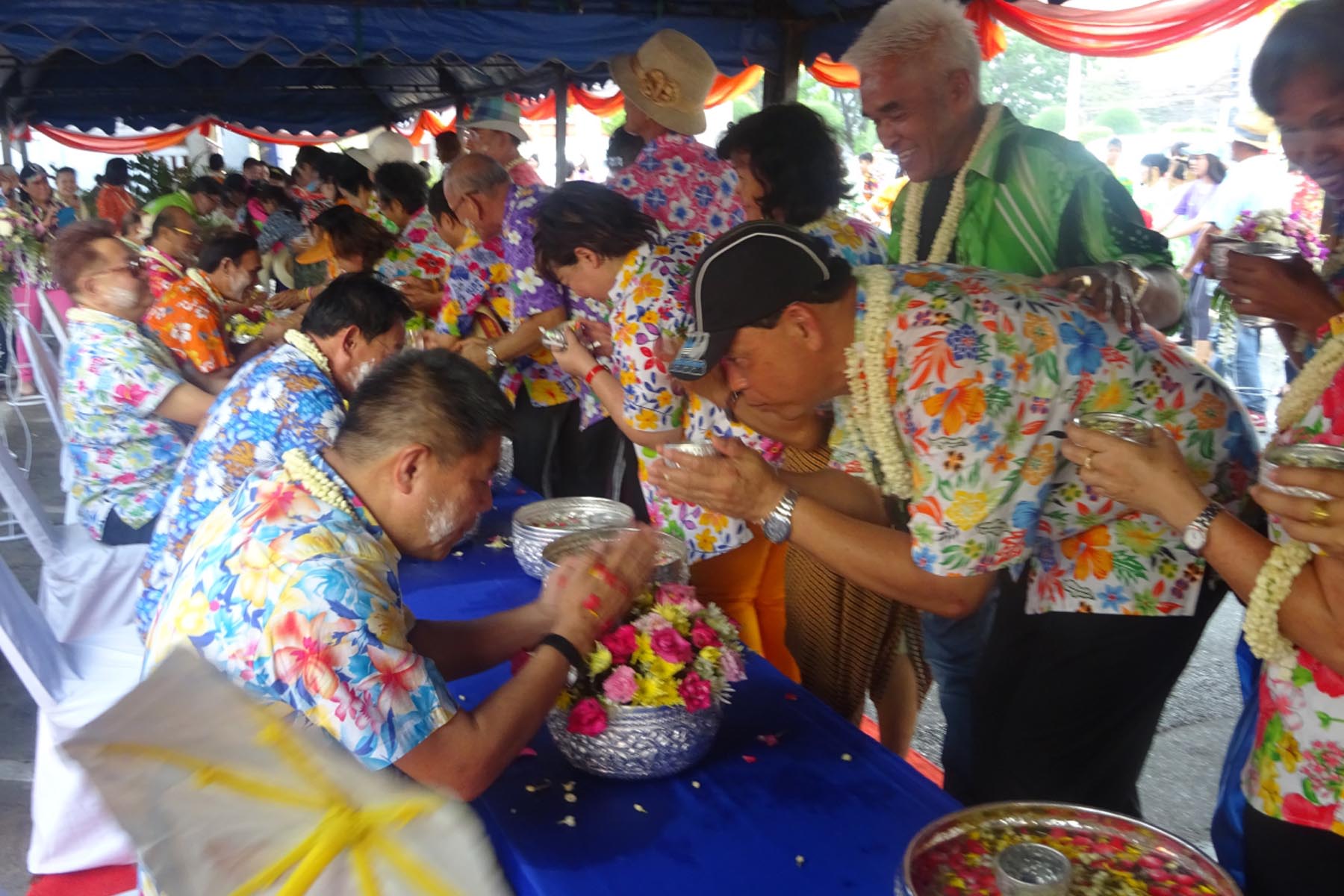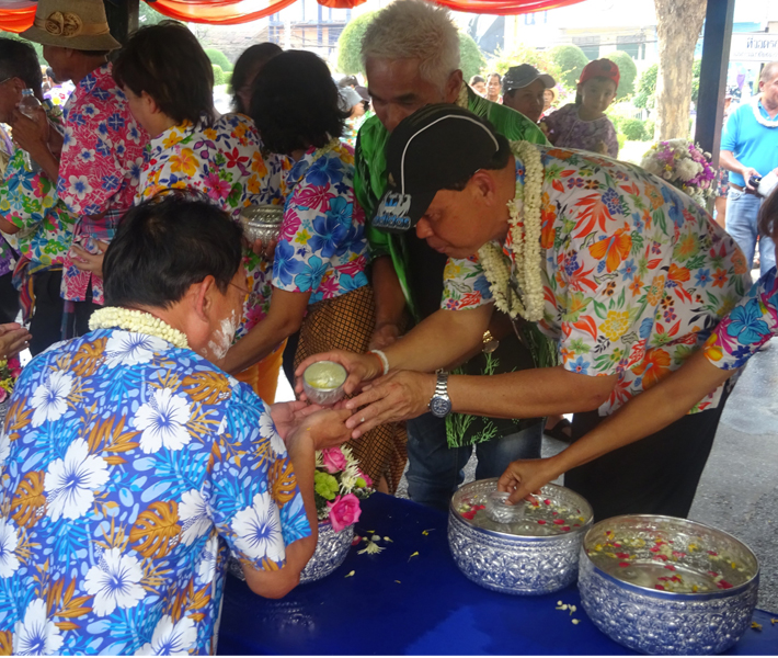 และในช่วงบ่ายร่วมรดน้ำ ขอพรผู้ใหญ่เพื่อเป็นสิริมงคล