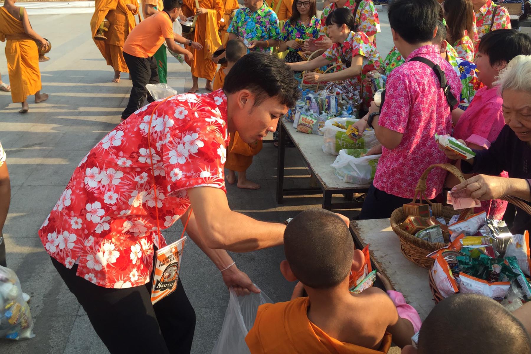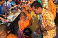 โดยช่วงเช้ามีพิธีทำบุญตักบาตรข้าวสารอาหารแห้ง