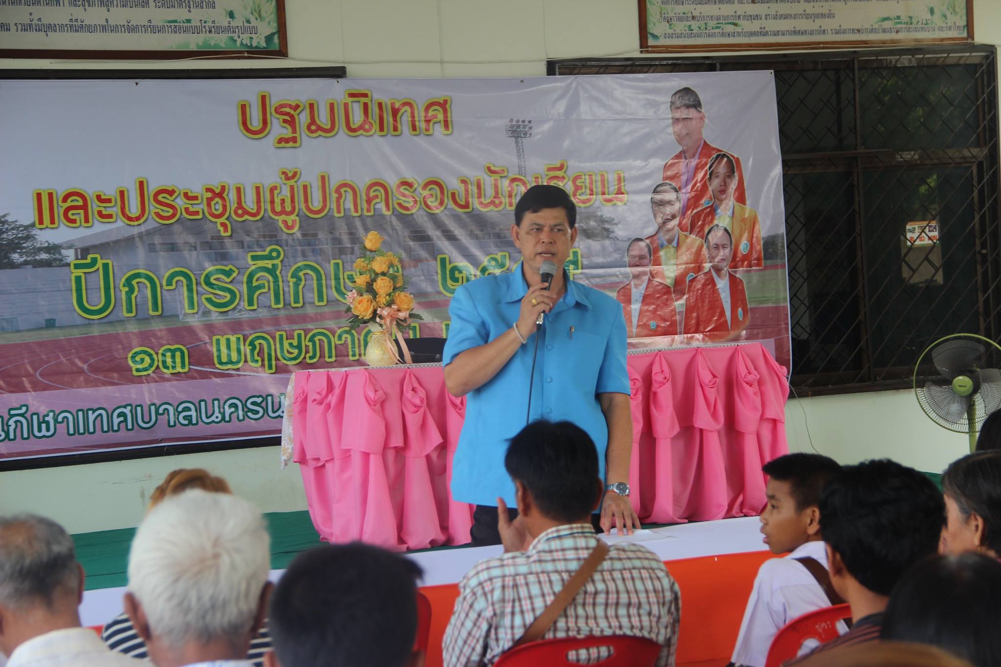 นายบำรุง เจริญพจน์ รองนายกเทศมนตรีฯ กล่าวเปิดการปฐมนิเทศและประชุมผู้ปกครอง |