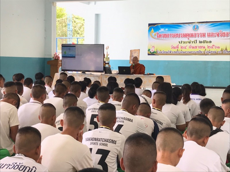 วันที่ 24 กันยายน 2561 โรงเรียนกีฬาเทศบาลนครนครราชสีมา(อนุสรณ์ ๗๐ ปีเทศบาล) ได้จัดโครงการอบรมคุณธรรมและจริยธรรม ให้กับนักเรียนได้ร่วมกิจกรรมเพื่อส่งเสริมให้ผู้เรียนมีคุณธรรม จริยธรรม ช่วยเหลือเกื้อกูลซึ่งกันและกัน ปฏิบัติตามหลักธรรมคำสอนของพระพุทธศาสนาและนึกถึงประโยชน์ส่วนรวมมากกว่าส่วนตน โดยมี ผู้อำนวยการรพวัชญ์ โพธิ์งามเป็นระธานในพิธีเปิดโครงการ และได้รับเกียรติจากพระอาจารย์จากวัดสุทธจินดา จังหวัดนครราชสีมา เป็นวิทยากรให้ความรู้ ด้าน คุณธรรม จริยธรรมให่้กับนักเรียน ณ อาคารเรียน 3 โรงเรียนกีฬาเทศบาลนครนครราชสีมา(อนุสรณ์ ๗๐ ปีเทศบาล) |