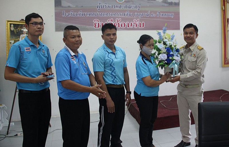 วันที่ 13 สิงหาคม 2563 คณะครูร่วมต้อนรับ สิบตำรวจโท นพกร พุทธา ดำรงตำแหน่งผู้อำนวยการโรงเรียนกีฬาเทศบาลนครนครราชสีมา และนายประสิทธิ์ เทศสูงเนินดำรงตำแหน่งผู้เชียวชาญด้านการศึกษา ณ ห้องประชุมอาคารเรียน 2 โรงเรียนกีฬาเทศบาลนครนครราชสีมา (อนุสรณ์ ๗๐ ปี เทศบาล) |